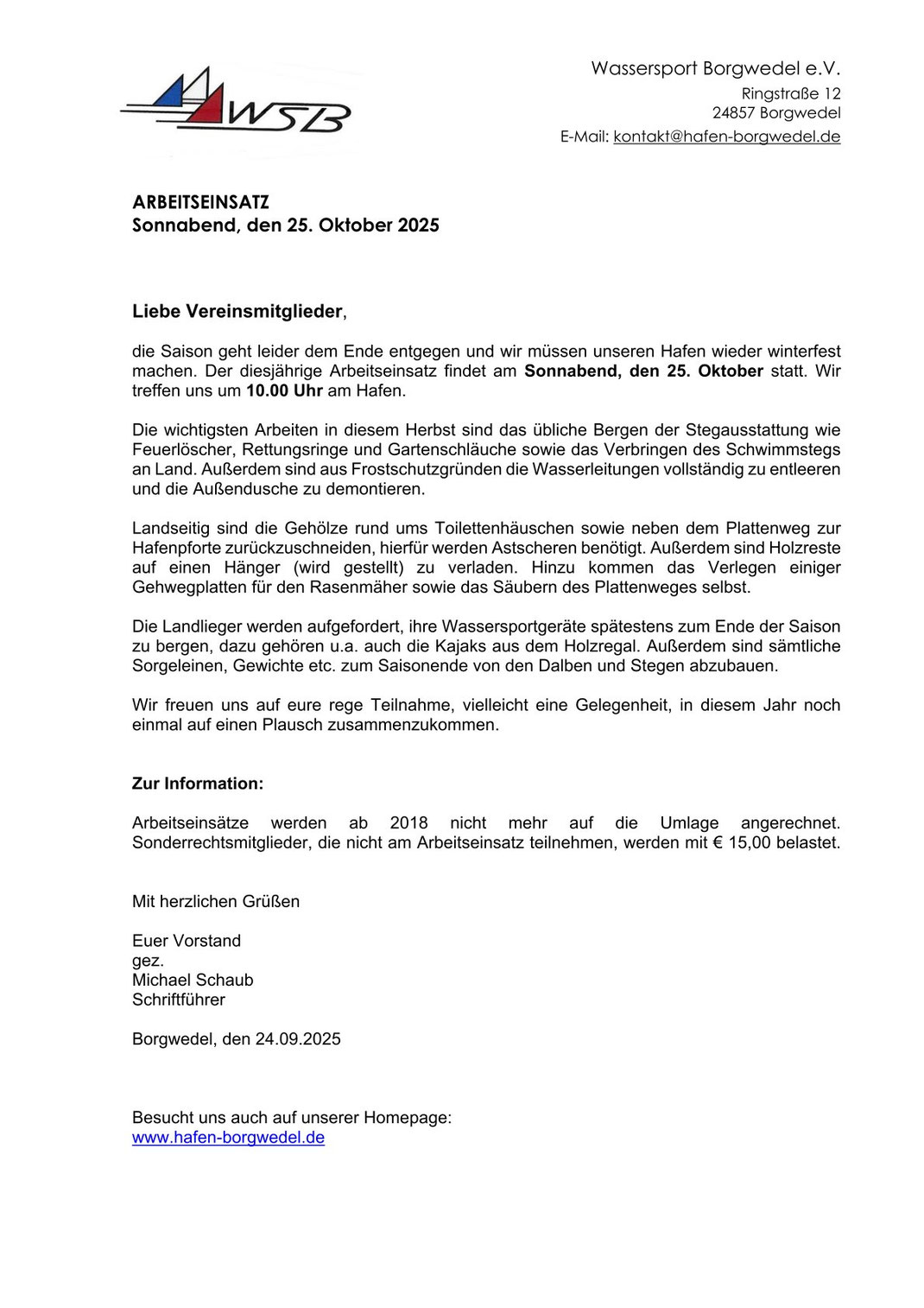 Herbst Arbeitseinsatz Sonnabend, 25.10.2025